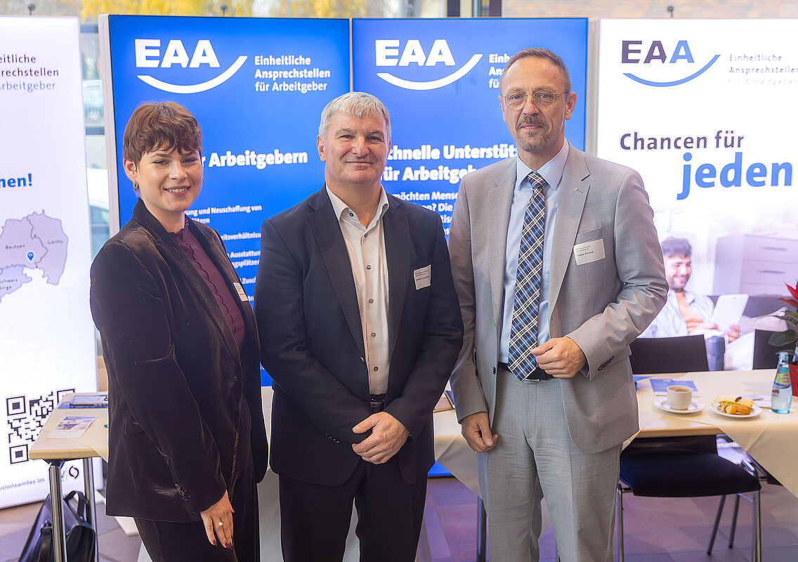 Großes Interesse fanden auch die zahlreichen Beratungsangebote für Arbeitgeber*innen und Teilnehmende. An mehreren Beratungsinseln informierten Institutionen wie die Einheitliche Ansprechstelle für Arbeitgeber (EAA), der Kommunale Sozialverband Sachsen (Inklusionsamt), der gemeinsame Arbeitgeberservice der Arbeitsagentur und des Jobcenters Leipzig, die Kammern (HWK und IHK), der Integrationsfachdienst (IFD) sowie die Deutsche Rentenversicherung über Unterstützungsmöglichkeiten.