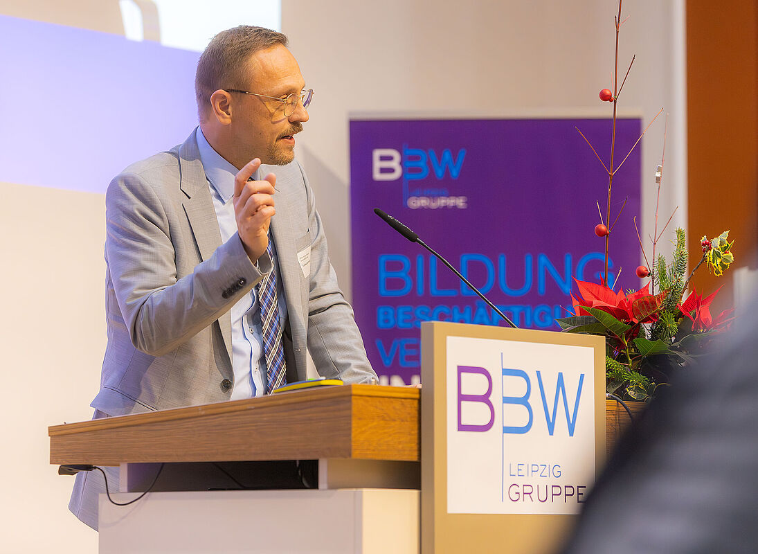 Auch Tobias Schmidt, Hauptgeschäftsführer*in der BBW-Leipzig-Gruppe, ordnete den Tag in einen größeren gesellschaftlichen Zusammenhang ein und machte auf bestehende Herausforderungen aufmerksam: